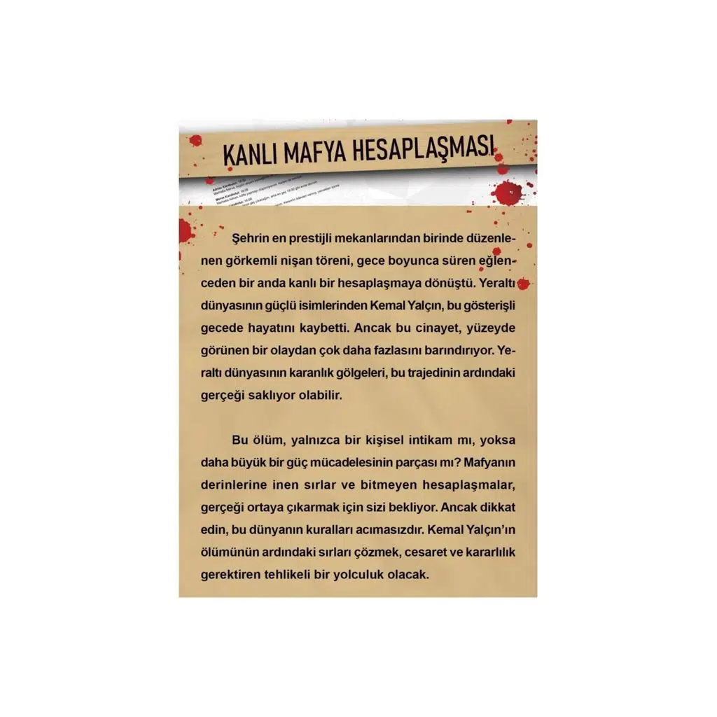 Her ayrıntıyı sorgulayacağınız, ipuçlarını takip edeceğiniz ve suçluyu ortaya çıkaracağınız bir deneyime hazır mısınız? Dedektif Cinayet Çözme Oyunu ile sıradan bir akşamı unutulmaz bir maceraya dönüştürün!